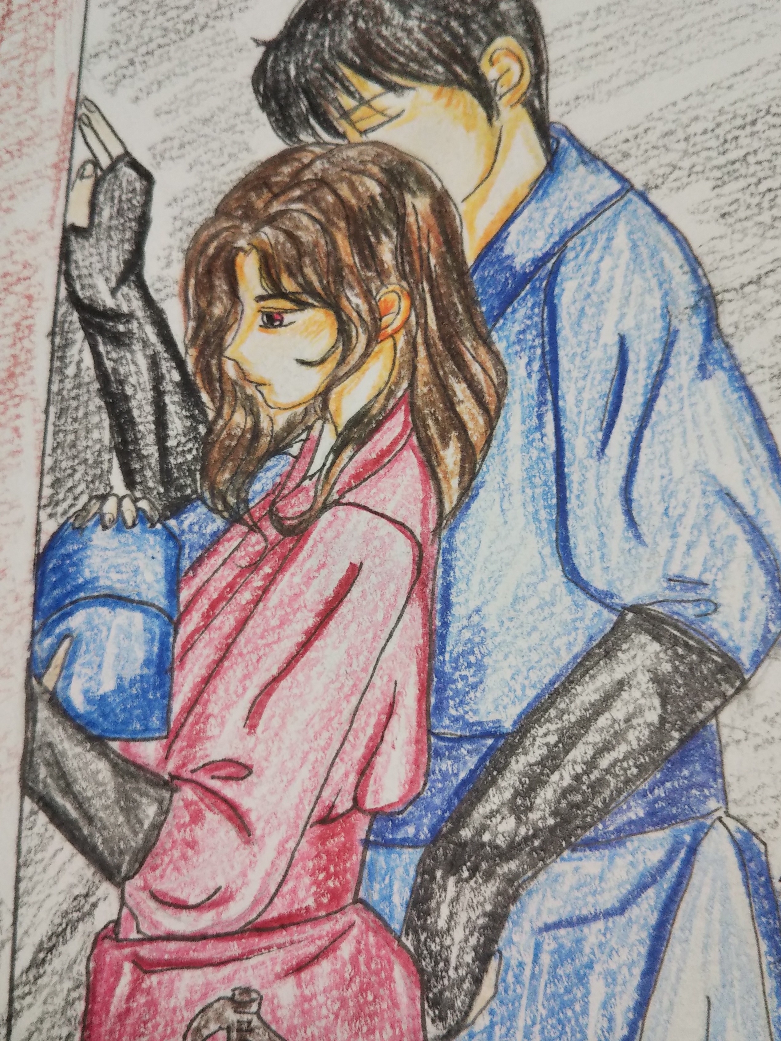頬にキスするかのようにして、彼女に小声で囁く。彼女もそれに気づいて、手にしていた箱を置いて弓を手にする。