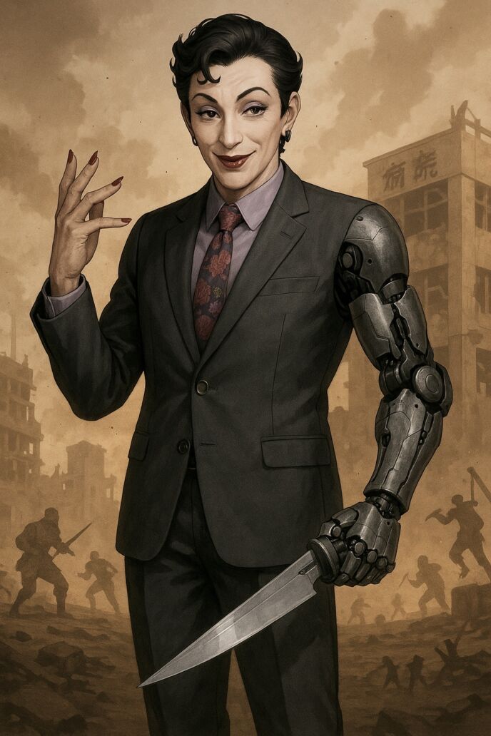 勇(ユダ)「あの電子モニター板、あそこに‘ゴエモン’が映ってる。あのオカマ野郎、連邦を牛耳ってジャポニカを苦しめやがって。イッキさんの仇を取ってやるぜ。」