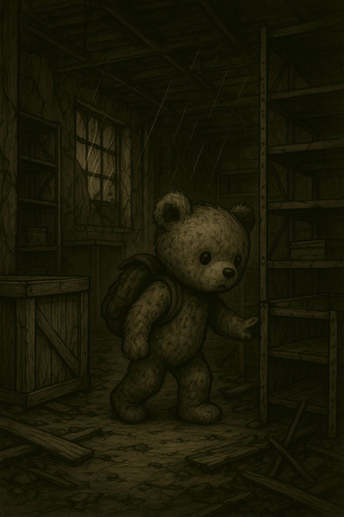 小さなぬいぐるみ型のロボットは、再び泥水の中へ足を踏み出す。その金属の足音が、降りしきる雨音に吸い込まれて消えた。
