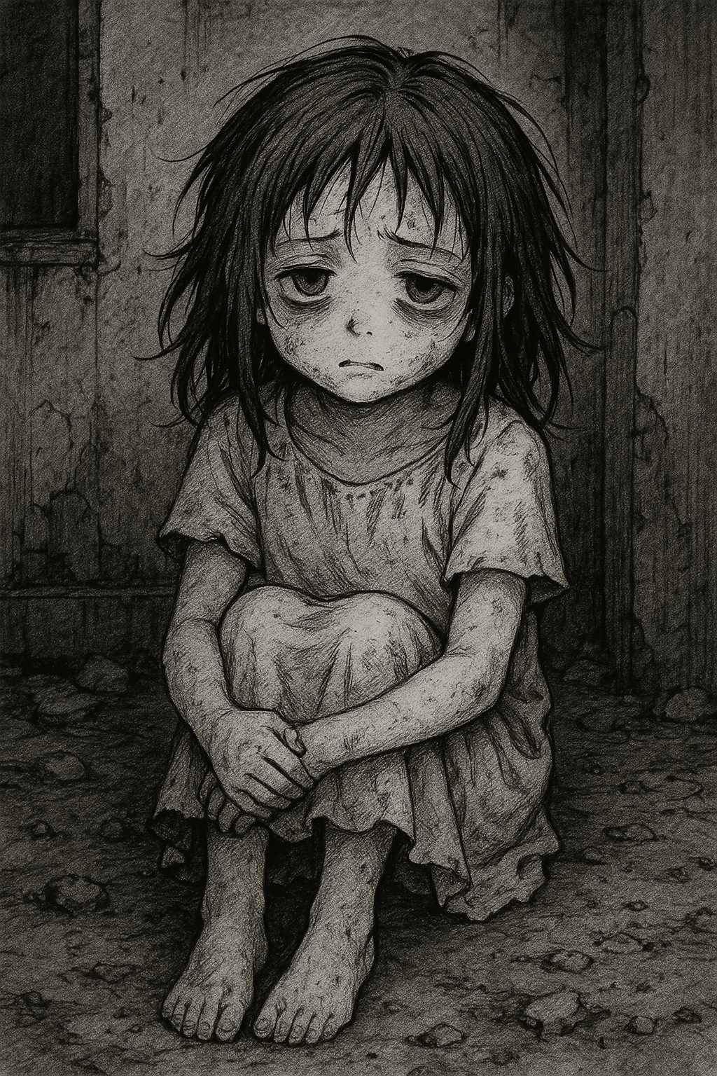 小さな体。泥に汚れたワンピース。剥き出しになった手足の肌は、まるで灰を溶かし込んだような色をしている。