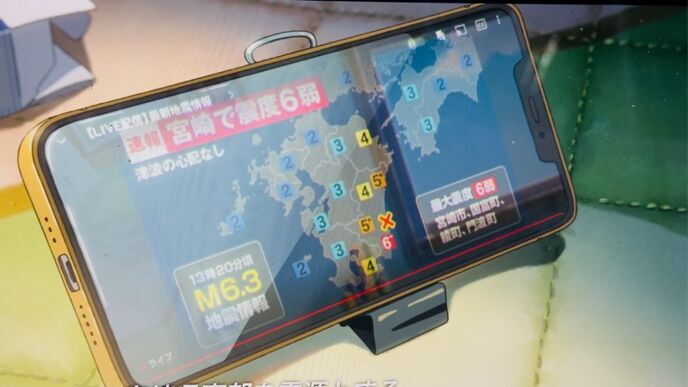 そして、映画が始まってから15分経ったシーンで「震度6弱」「宮崎沖の地震」という描写があります。