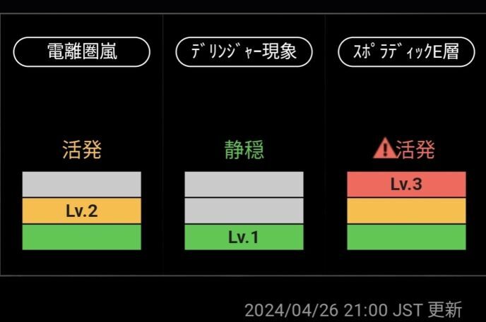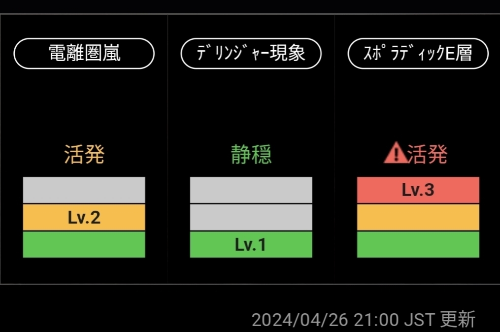 スポラディックE層がLv3で、非常に活発になっています。注意が必要かもしれません。