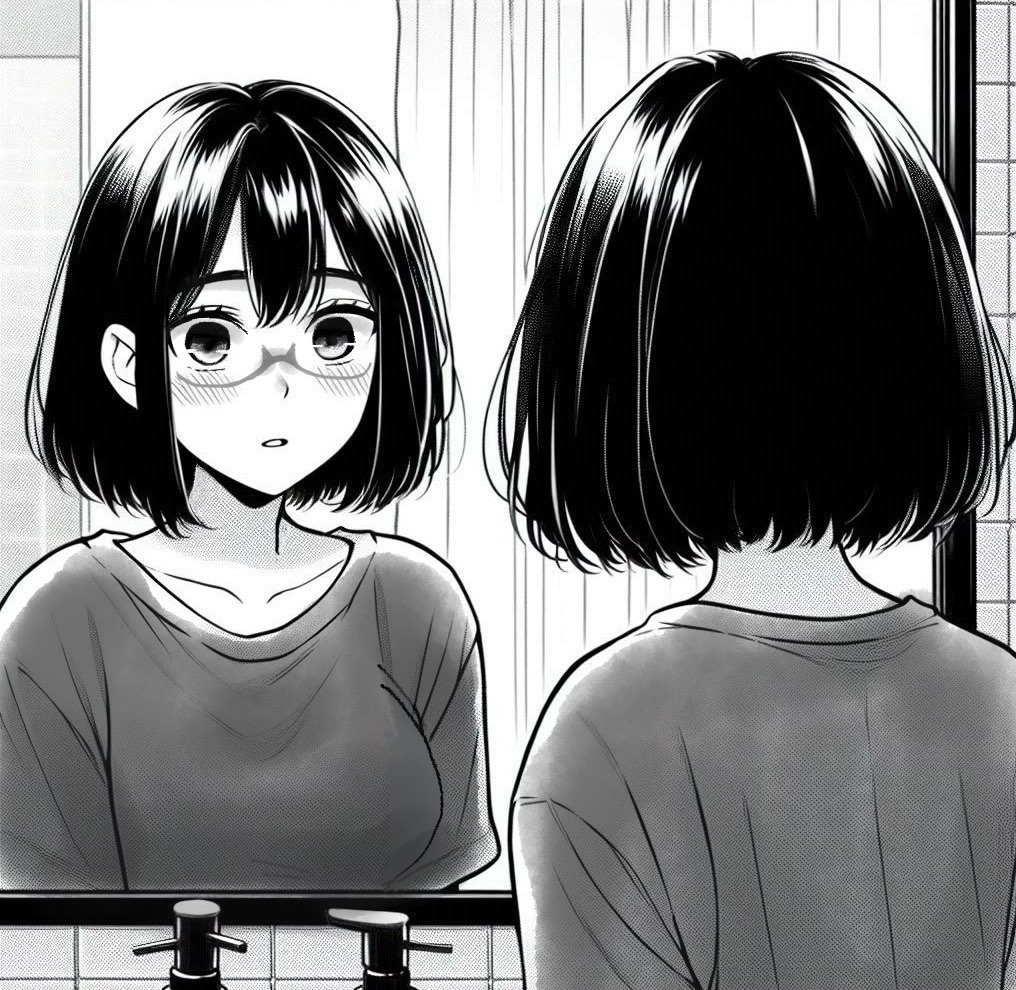 シャワーを止め、小さく息を吐く。短くなった左右の毛先から、ポタポタと水滴が落ちるのが見える。