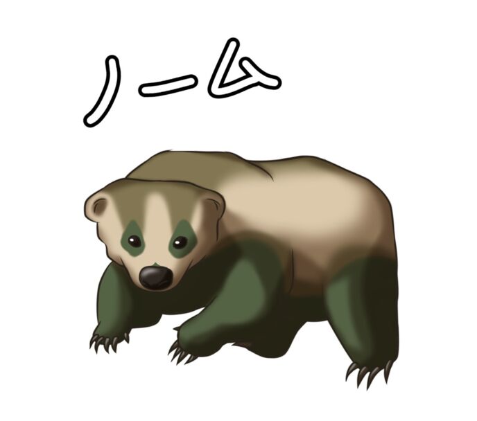 飛び出してきたのは、目の周りや手足の毛が黒に近い黄緑色をした茶色いアナグマだ。