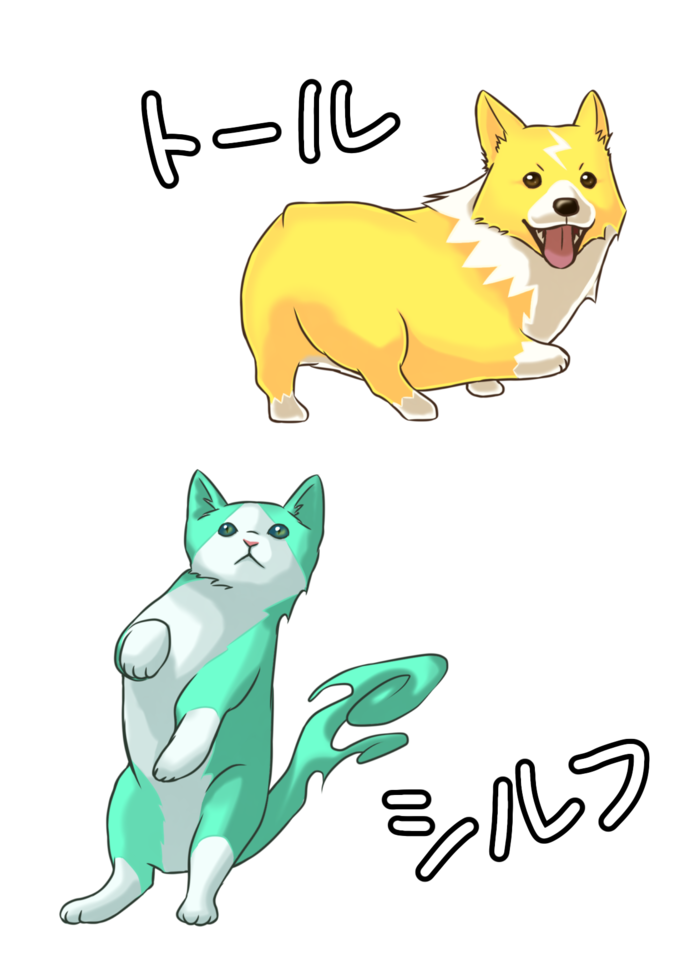 短い手足につぶらな瞳、黄色と白の綺麗な毛並みをした犬…コーギーそっくりな精霊だ。