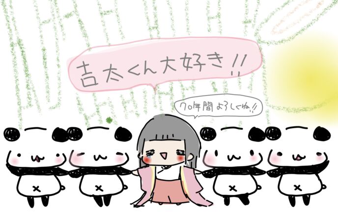 そうしてかぐや姫は、月に戻るまでの70年間、吉太くんとパンダちゃんと幸せに暮らしました。