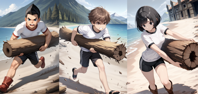 単細胞のアルスとロキは競うように丸太を運んでいる。