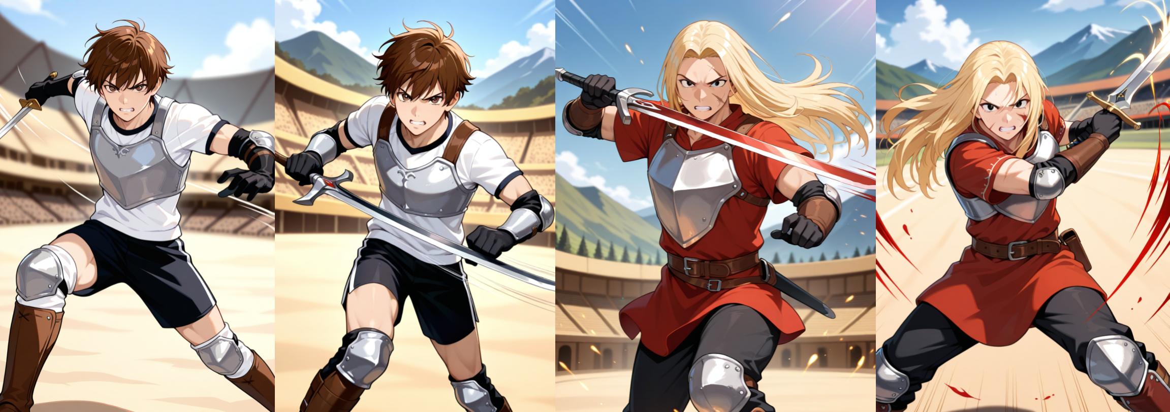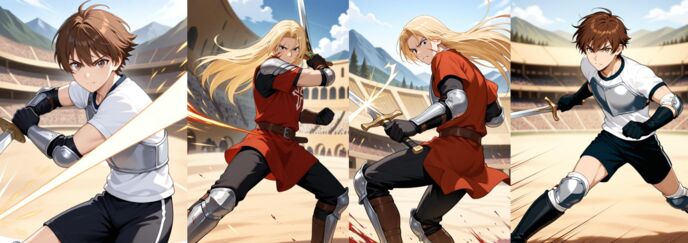 対戦が始まった。両者が軽く剣を交えた後、中央での一騎打ちが始まった。アルス先輩は、いつもの顔で調子は悪くなさそうだ。2年生の先輩も応援している。エリアスさんの本格的な戦いを見るのは初めてだ。どんな戦い方をするんだろう。