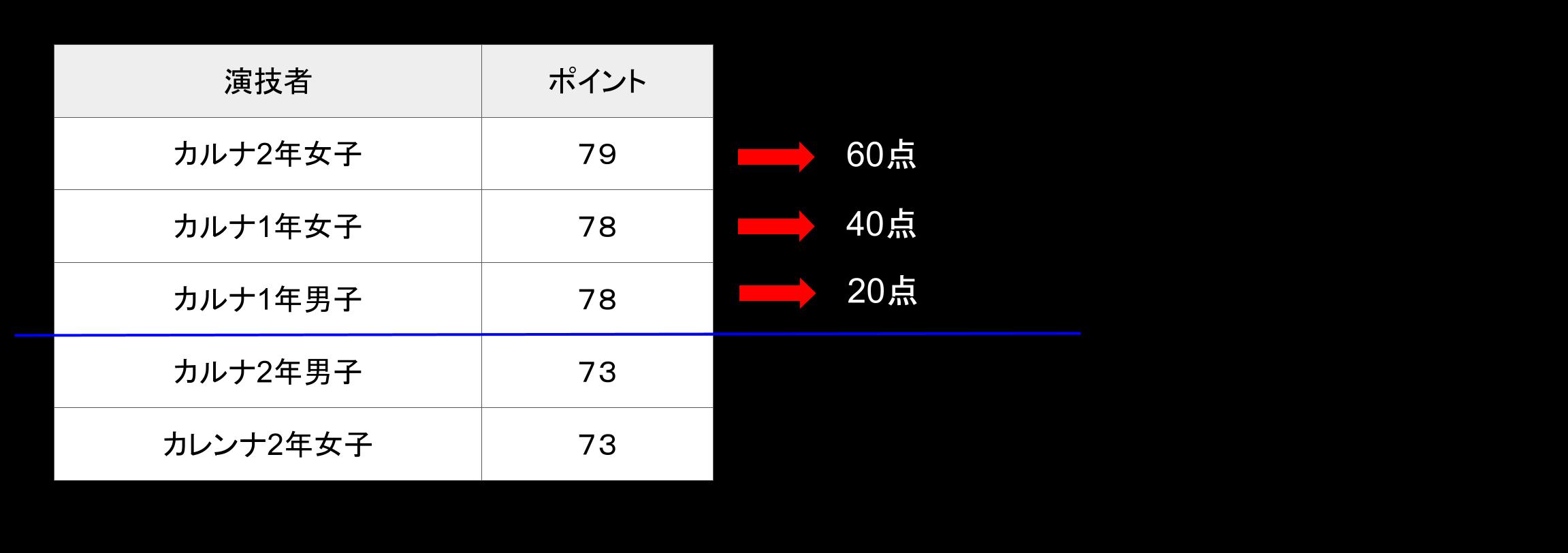 得点になるのは上位3チームだけ。