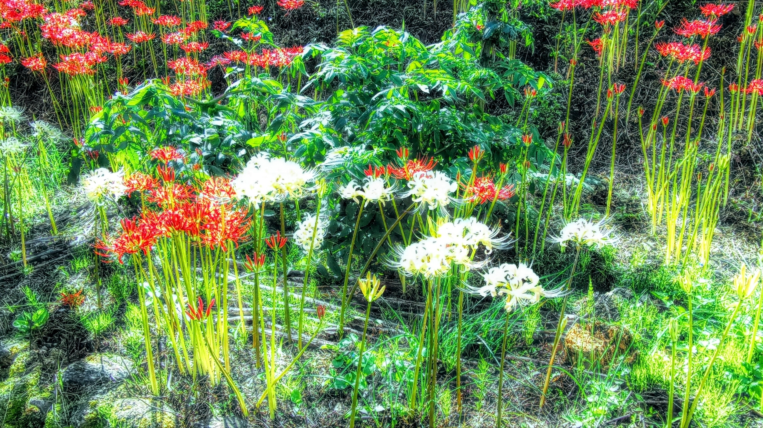 お寺さんにはいつも綺麗な『白の彼岸花』が咲きほこり、秋風になびく……。