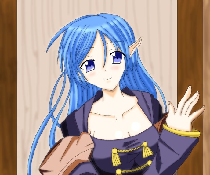すると、カウンターの奥からゆったりとした歩みで、ローブを纏った、青い髪を長く伸ばした女性が表に出てくる。