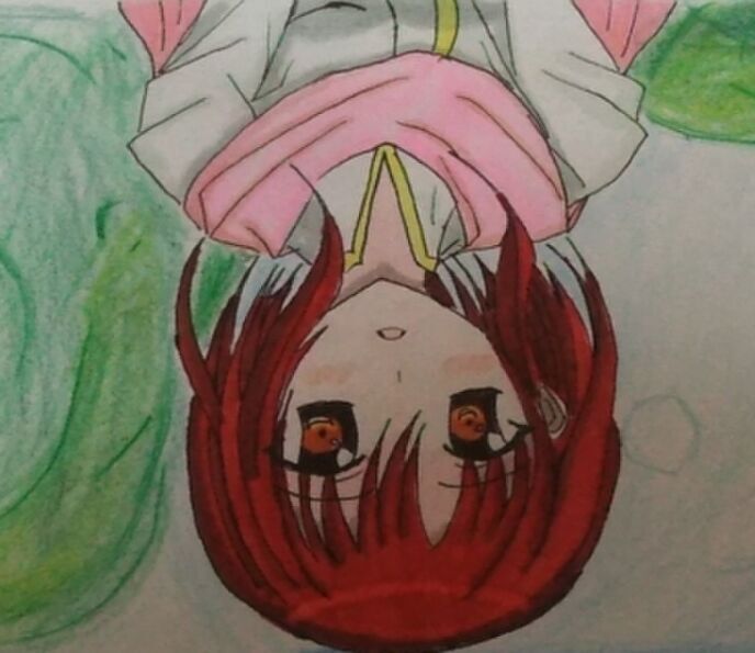 紅色のショートボブに、オレンジ色の瞳、かわいい系の顔立ち、スタイルはまぁ普通くらいか、身長はおよそ155~160cmくらい、年齢は多分十五か十六辺り。