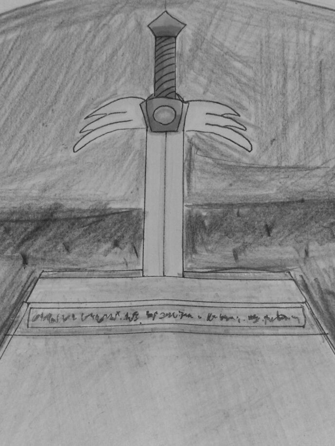 その小部屋の中には、石の台座に直立して突き刺さった、白い翼を模ったような形状の鍔を持った剣が一振り。