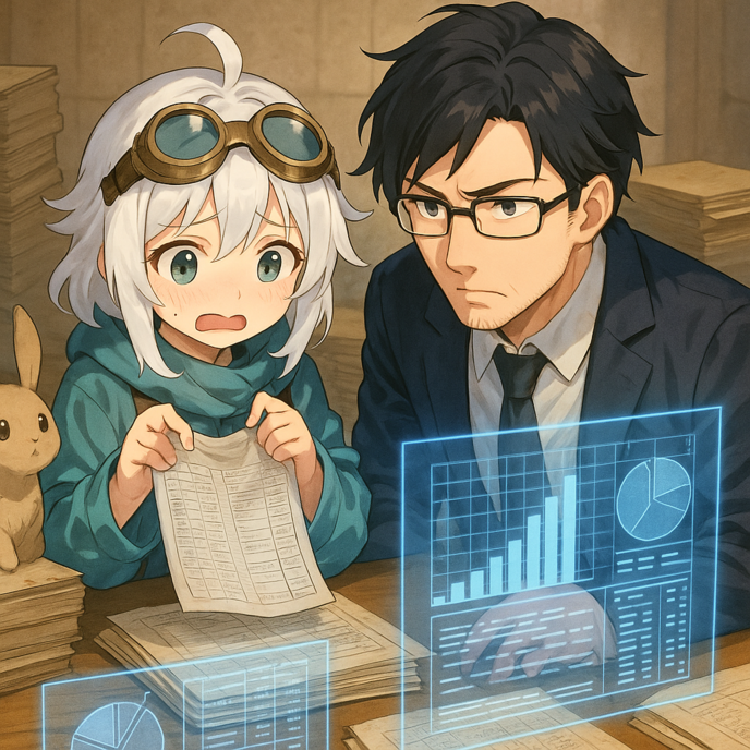 「この支出記録、重複してる可能性があります。あ、でも国庫台帳と照合すると整合性が……えっと、今、照らし合わせて──」