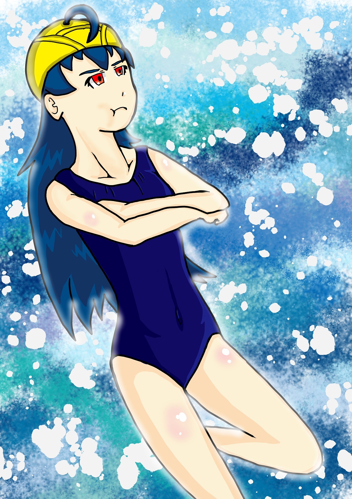 腕を組んでぷんぷんと怒っているなな。その姿は黄色いプール帽に紺色のスクール水着。先程の女子が持っていた物を見て霊力で再現したのだろう。