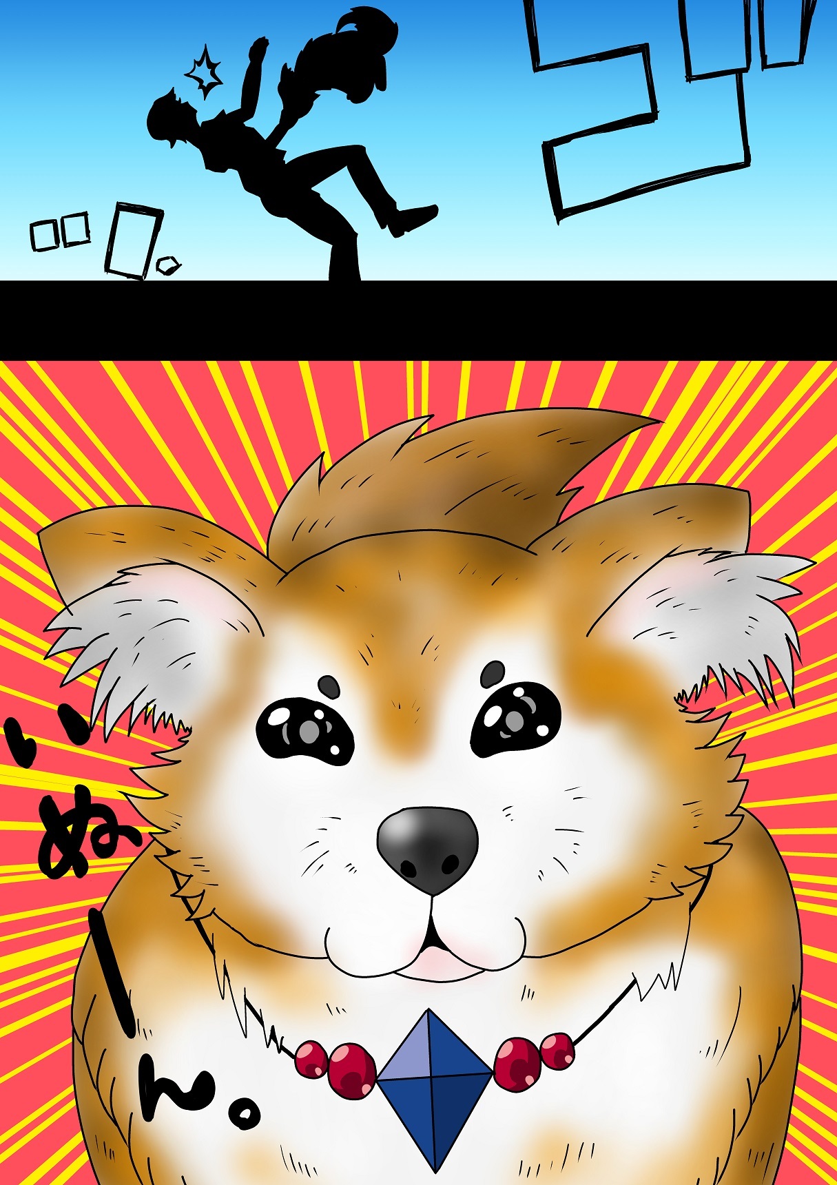 柴犬の猛烈タックルがオレの額に直撃した。