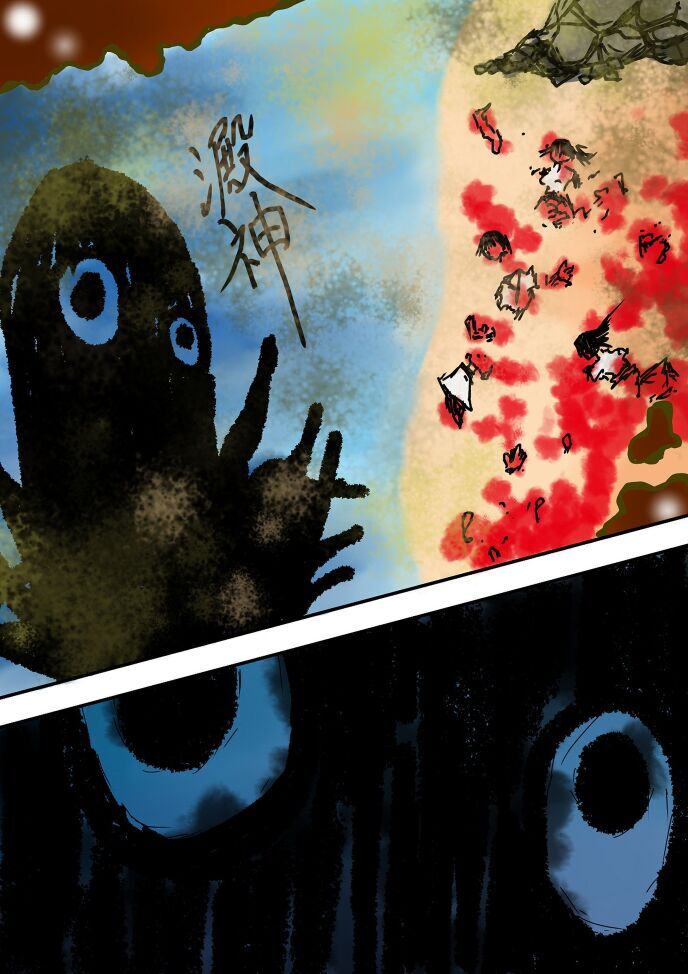 筆で描き殴ったようなタッチで、ギョロリとした二つの大きな目。ただそれだけの絵なのに不気味で背筋がぞわぞわしてくる。本物はどれだけ恐ろしい見た目をしているのだろうか。邪怪と同様の性質を持っていることを考えると、間違いなくグロテスクなのだろうことは想像に難くない。