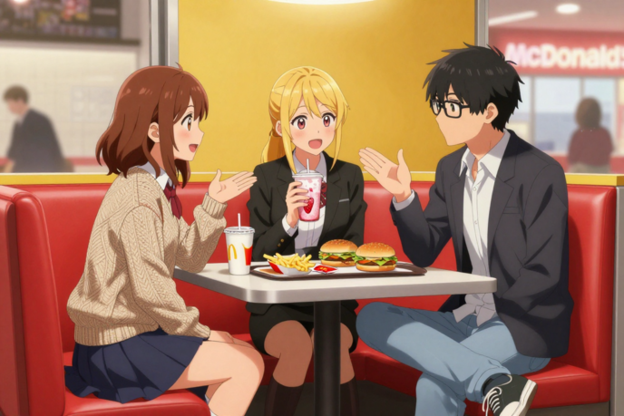 綾香は何気に哲郎のポテトを3本ぐらい取って、自分の口に放り込んだ。