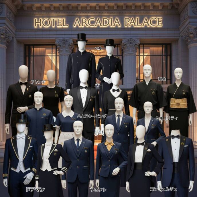 五ツ星ホテル「アルカディア・パレス」の若手ドアマン。入社3~4年、25歳くらいの男性。