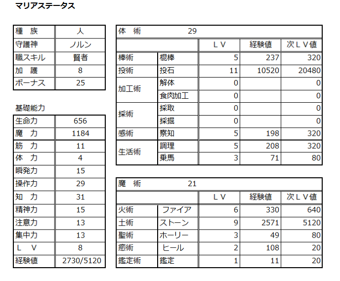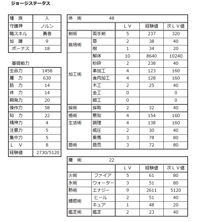 そして気が付いたら職スキルが”勇者”と”賢者”に書き換わっており、俺は体術関係の基礎能力、筋力から操作力、マリアは魔術関係の基礎能力である知力から集中力までが十づつアップしていた。