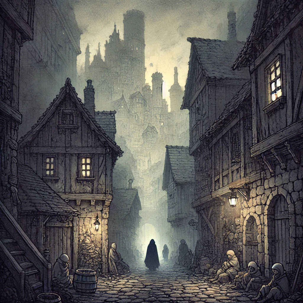街の片隅には虚ろな目で座り込む者、物乞いする者、 孤児などが溢れている。
