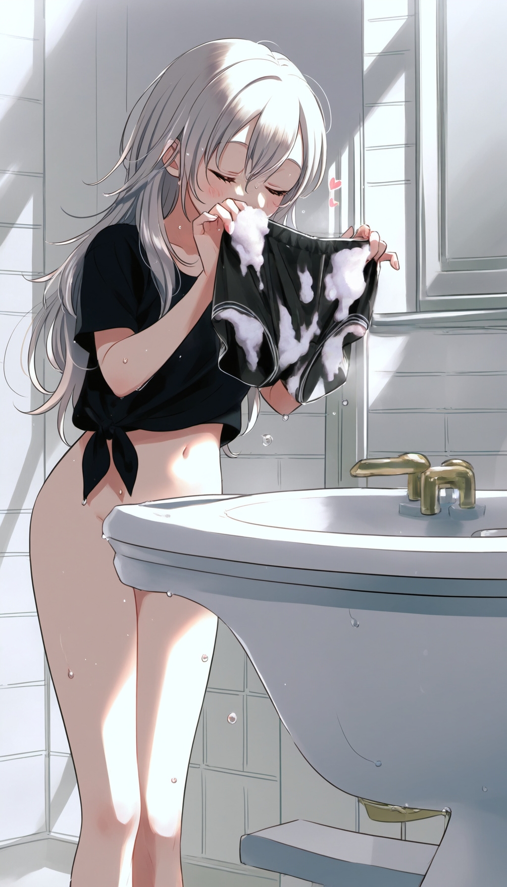 二人で黙々とパンツを洗う。よくよく考えてみればお互い下半身は丸出しだった。