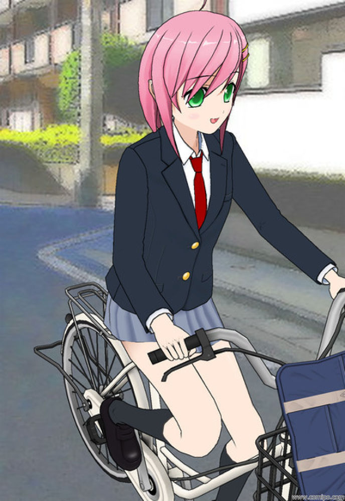 「私は部活の朝練もあるから一緒に行けない日も出てくると思うので、通学路で車の多い注意場所や学校の自転車置場を教えるからね~気を付けて付いてきなさい!」