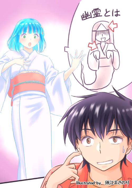 「『浮遊霊』の『浮遊』ってのは『浮いてる』って意味じゃなくて、『目的も無くぶらぶらしている』っていう意味だよ。君のように『自分が死んだ事を受け入れられず、その辺を彷徨っている霊』を『浮遊霊』って言うんだ!」