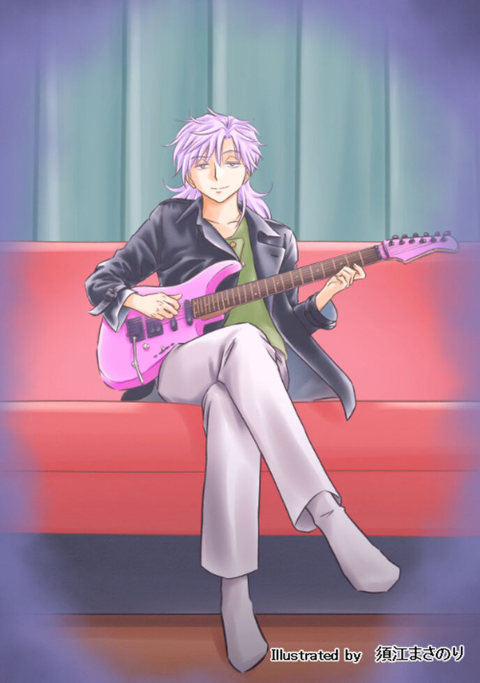 そこにある見慣れたソファーには、見た事もない男が腰掛けた状態でアンプ(スピーカー)にも繋がっていないエレキギターを弾いていた。