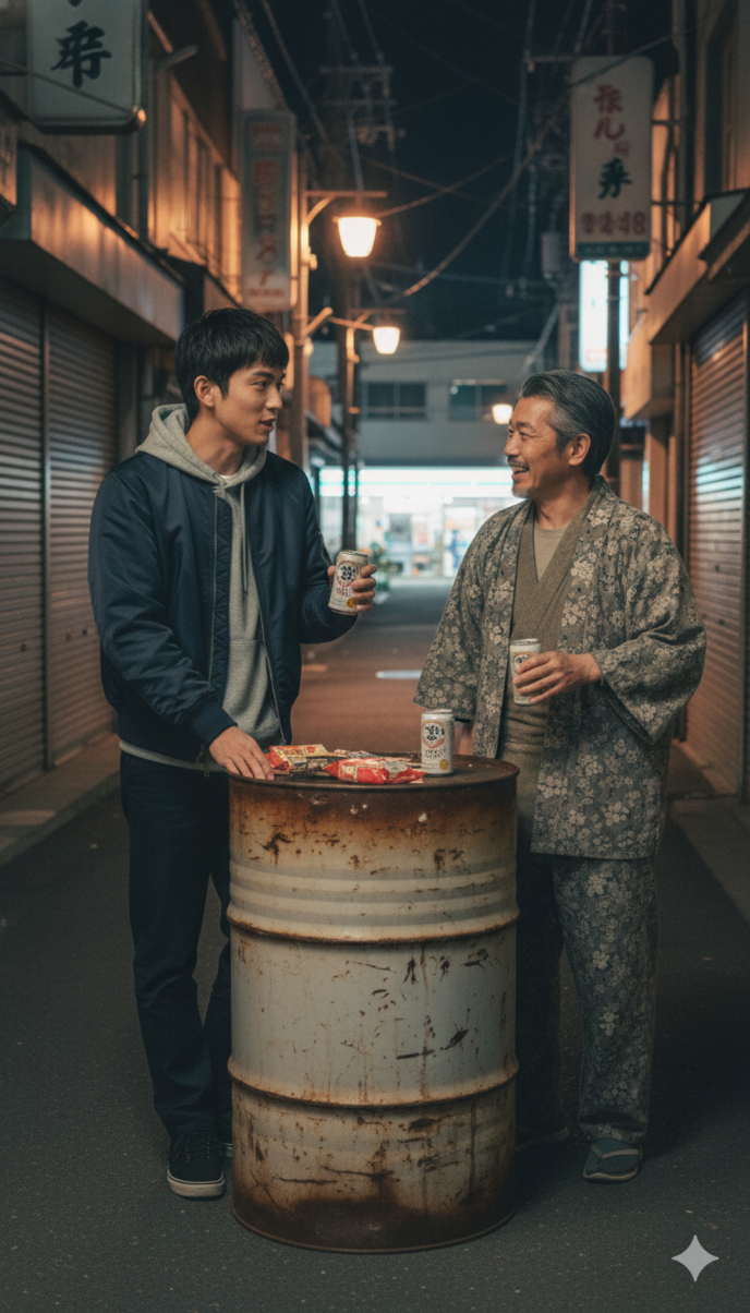 「さあ、おじぃ。二軒目は……コンビニのイートインで、カップ酒と納豆でも食うか! 郷に入っては郷に従え、俺たちの夜はまだ終わらねえぞ!」