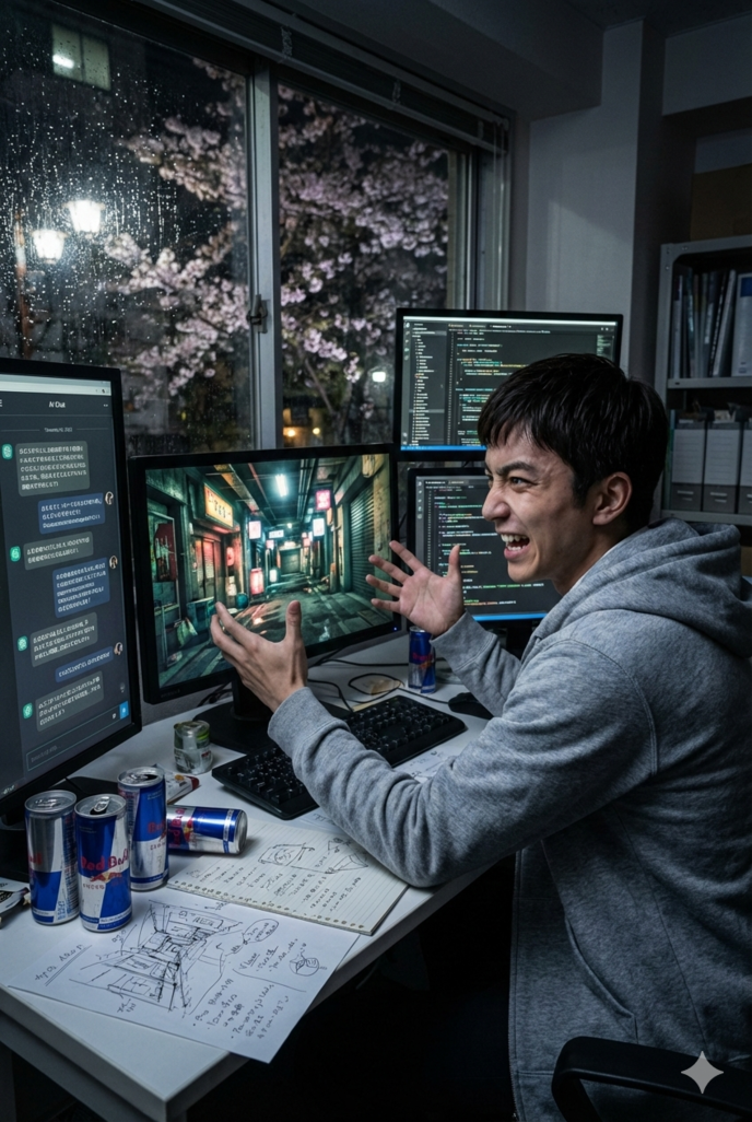 俺がこの章の締めくくりに選んだ戦場は「ゲーム開発」という、論理と創造性が極限まで交差する領域だった。AIという電子の知性に、俺の脳内にあるマジキチな世界観を、プレイヤーが自らの意志で干渉できる「インタラクティブな宇宙」として再構築させる試みだ。