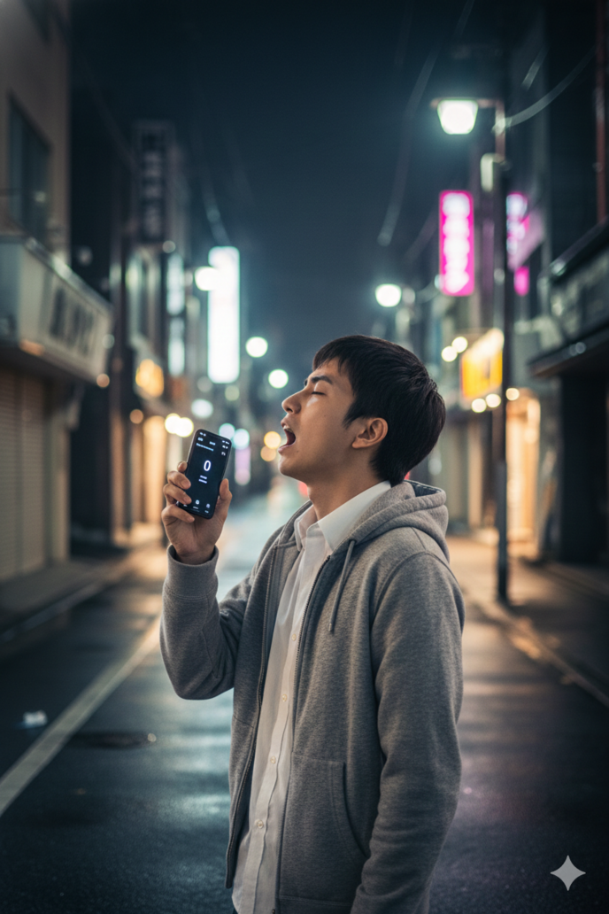 俺はいつものように事務所の重い扉を閉め、夜の静寂へと踏み出す。スマートフォンの画面をタップし、配信アプリを立ち上げた。画面右上に表示される同時視聴者数は、冷酷なまでに「0」を示している。