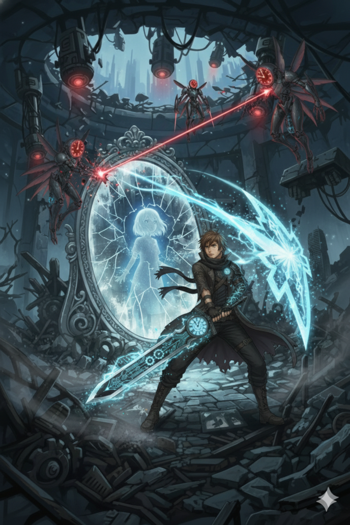 遠く、地上で再びセンチネルの駆動音が響き始める。レイジは鏡を丁寧に布で包み、背嚢にしっかりと固定した。そして、重厚なクロノ・ハンドを肩に担ぎ上げる。