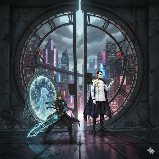 ゲート周辺には、先ほどのセンチネルとは比較にならない数の警備ドローンが巡回し、さらに重装歩兵ユニット「クロノ・ガード」が二体、門番として鎮座している。彼らの持つ大盾は、接触した対象の時間を強制的に数秒巻き戻し、あらゆる物理攻撃を無効化する。