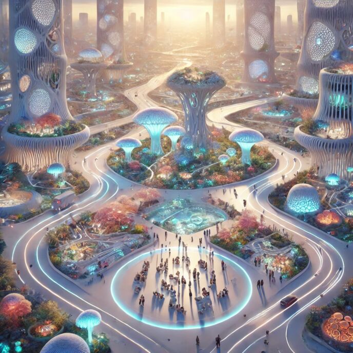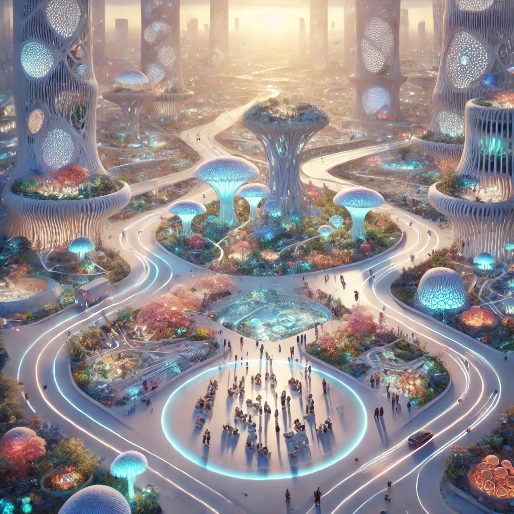 解放派の典型的な共同体は、オオサカ・スパイラル、ナイロビ・ブルーム、ニュー・キイウ、そして火星のアルケーなどに存在し、これらの都市は有機体のように機能する。例えば、建物は居住者の気持ちのリズムに応じて形を変え、道路は決まったグリッドに従わず「集団の意図」に応じて展開する。政治は、コンセンサス・セッションによって進められる。このセッションでは、市民は議論する代わりに感情を一時的に融合させ、共感マッピングを通して合意が形成される。貨幣はほとんど消滅し、「共鳴クレジット」に置き換えられた。それは、洞察、芸術、ソリューション・デザインなどがコミュニティーに響くことで得られる。教育には、内面の知覚構造を形にする認知彫刻の訓練が含まれた。ナイロビ・ブルームに住む10歳の少女は、学校を「考えを4方向で感じる方法を学ぶところ」と言っている。
