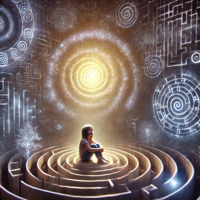 彼女の心は先ず、防御で反応しました。彼女は崩壊する迷路を投影しました:内へと螺旋状に巻き込む壁、悲しみの構造で封じられた再帰ループ。その中心で、子どもの声が何度も何度も言っています。
