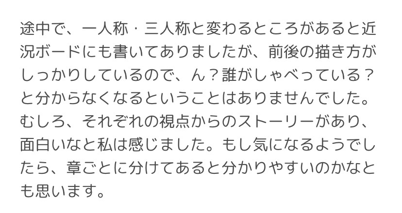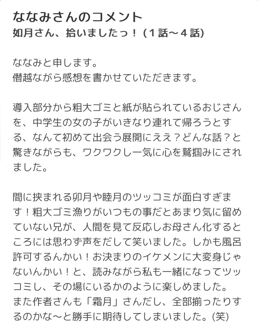 読後感の笑顔になるようなほっこり感は大切にして書いてきた部分はあったので、それがちゃんと読み手に伝わっているのがわかって嬉しかった。