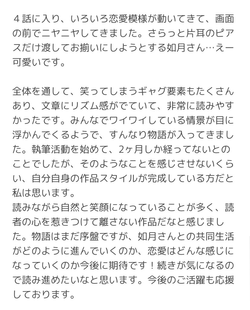 この返信のように、如月さんが読者の心を惹きつける作品になっているならいいなぁ。