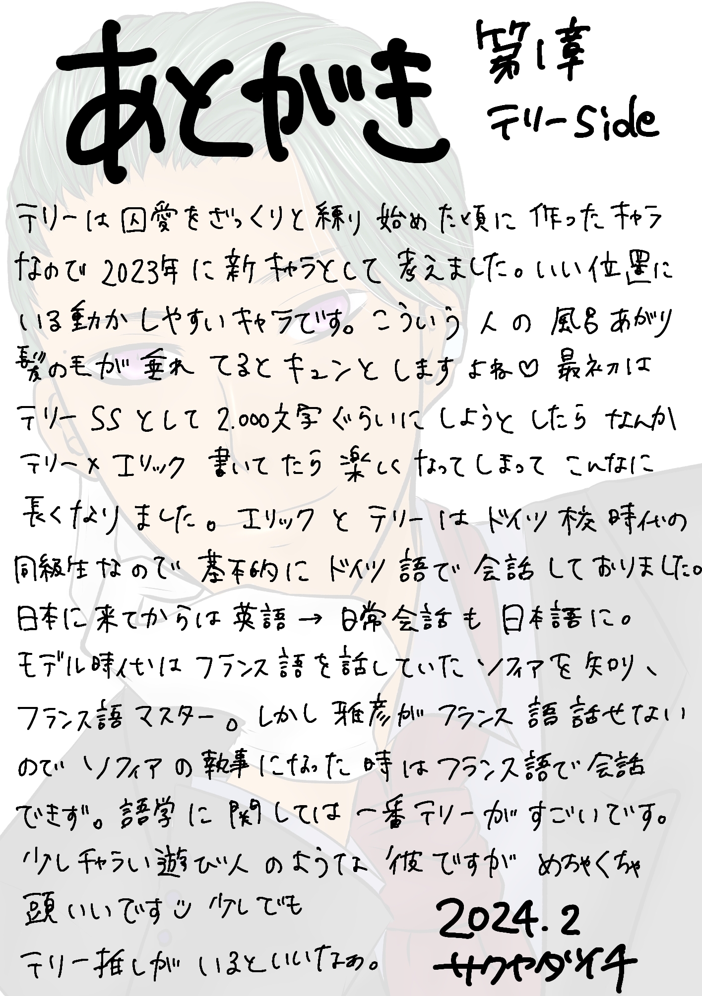 しおりを挟むなんかこのあとがき、テリーがモデルしてたの?みたいな感じに見えるな。