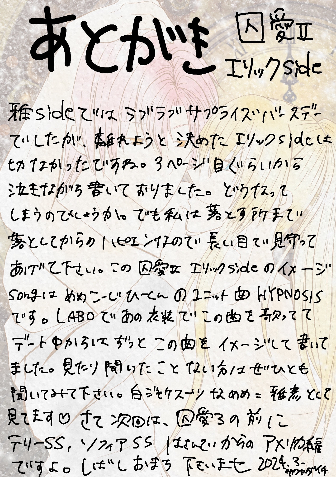 囚愛Ⅱ《エリックside》あとがき