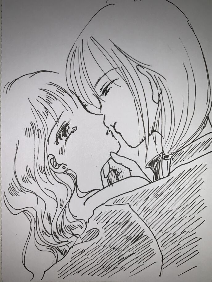 ハリジュはリリアの頬に手を当てる。リリアは俯いたまま首を横に振る。