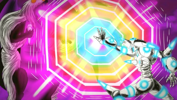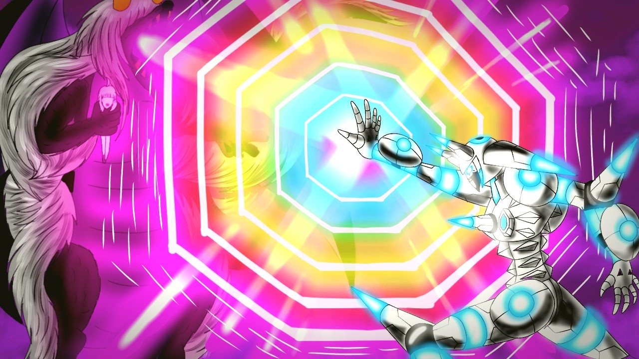 すると、ブッダリアは頭部の角の間から、電撃光線を放ちながら攻め込んだ。しかし、厭魔の屈強な身体に、吸収されてしまう。