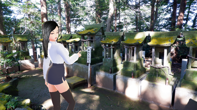六角殿を守るように、コの字型に並ぶ石造りの祠。その中でも中央に立つそれは、他の12柱よりも明らかに大きい。