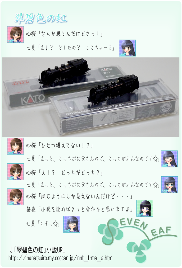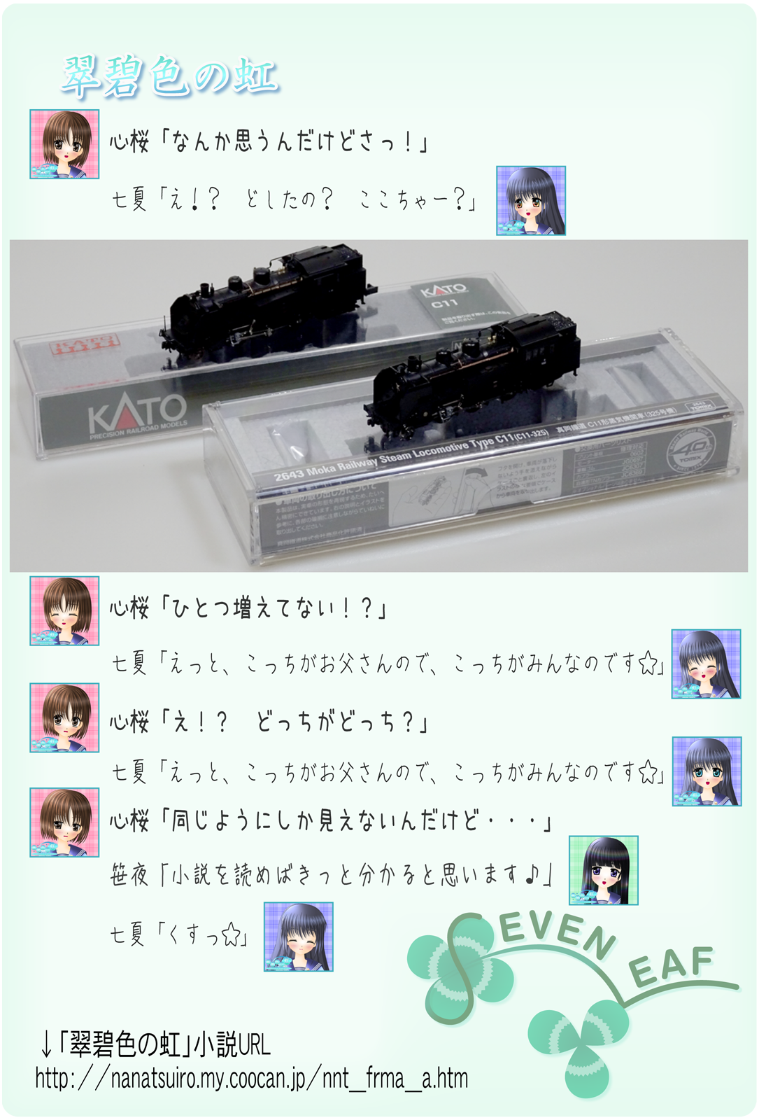 俺は思った・・・機関車が繋ぐのは、客車だけではなく、人と人もそうなんだなと。七夏ちゃんみたいな倒置法的考えになっている事に気付き、少し嬉しくなった。