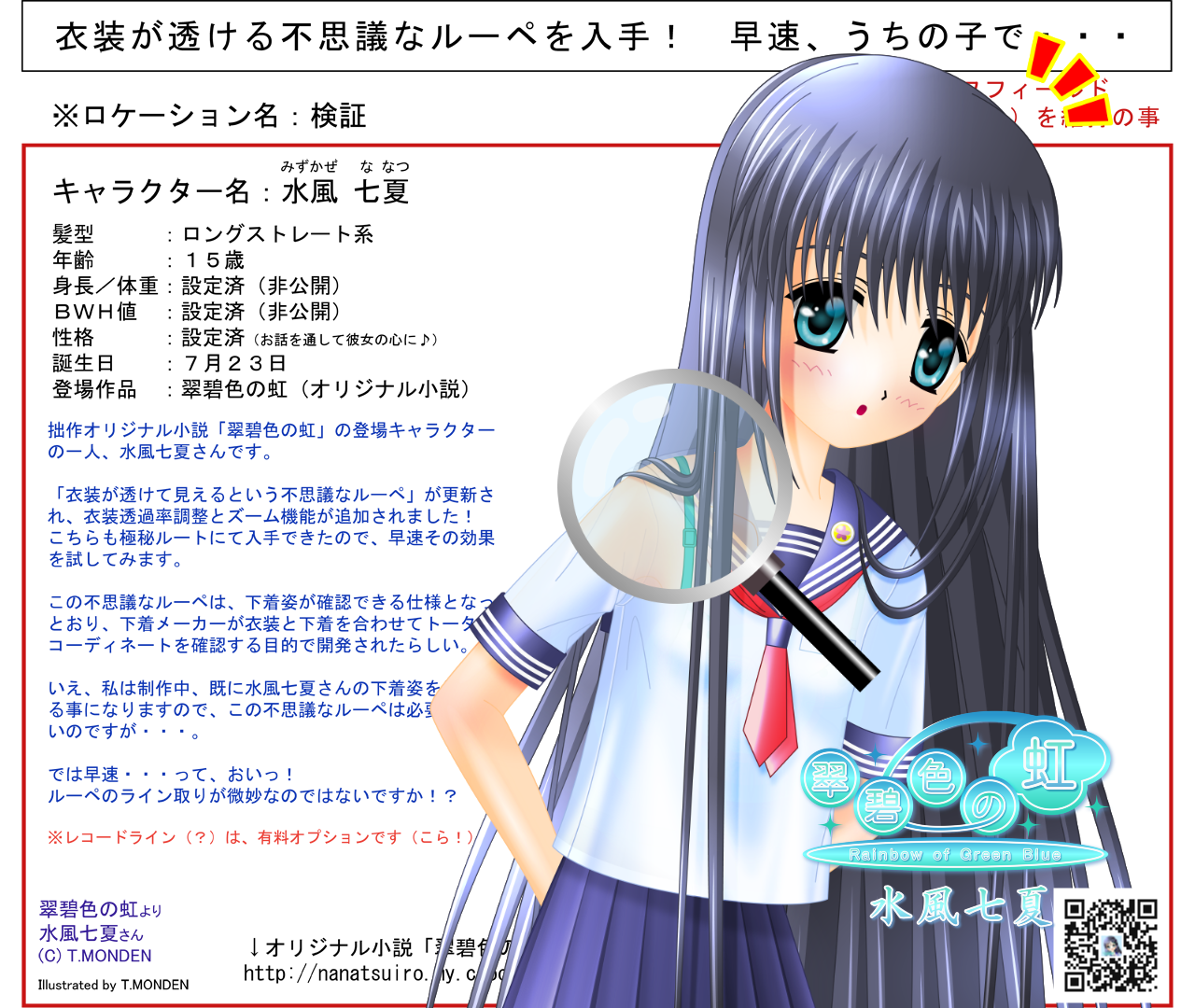 心桜「http://nanatsuiro.my.coocan.jp/nnt_suiheki_novel.htm#QUESTIONNAIRE」