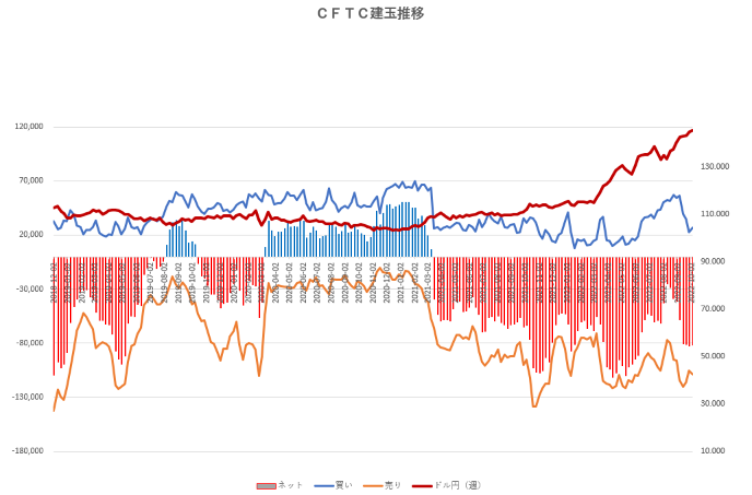 「そして最後が投機の要因ですが、アメリカの行政機関のひとつにCFTC(米商品先物取引委員会)というのがありまして、毎週火曜日に米国内の先物取引のポジション、つまり建玉を公開しています。建玉とは未精算のまま残った取引のことで、空売りなどの状況を把握するのに役立ちます」