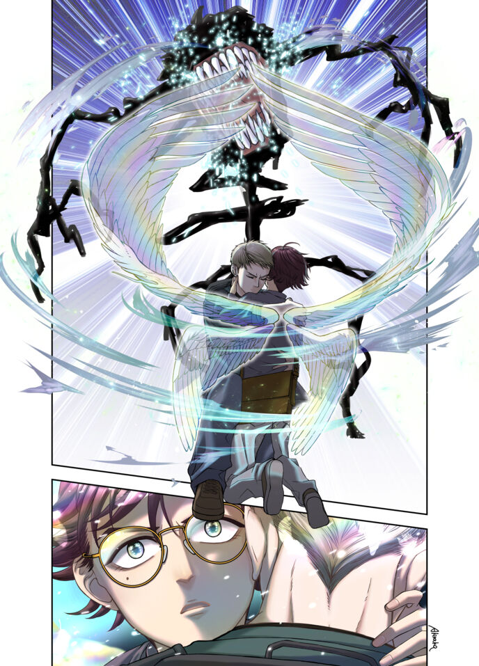 そして史が塞いでいた目を開けて目にしたのは、寿々の羽が鋼鉄のベールのようにして二人を守っている光景だった。