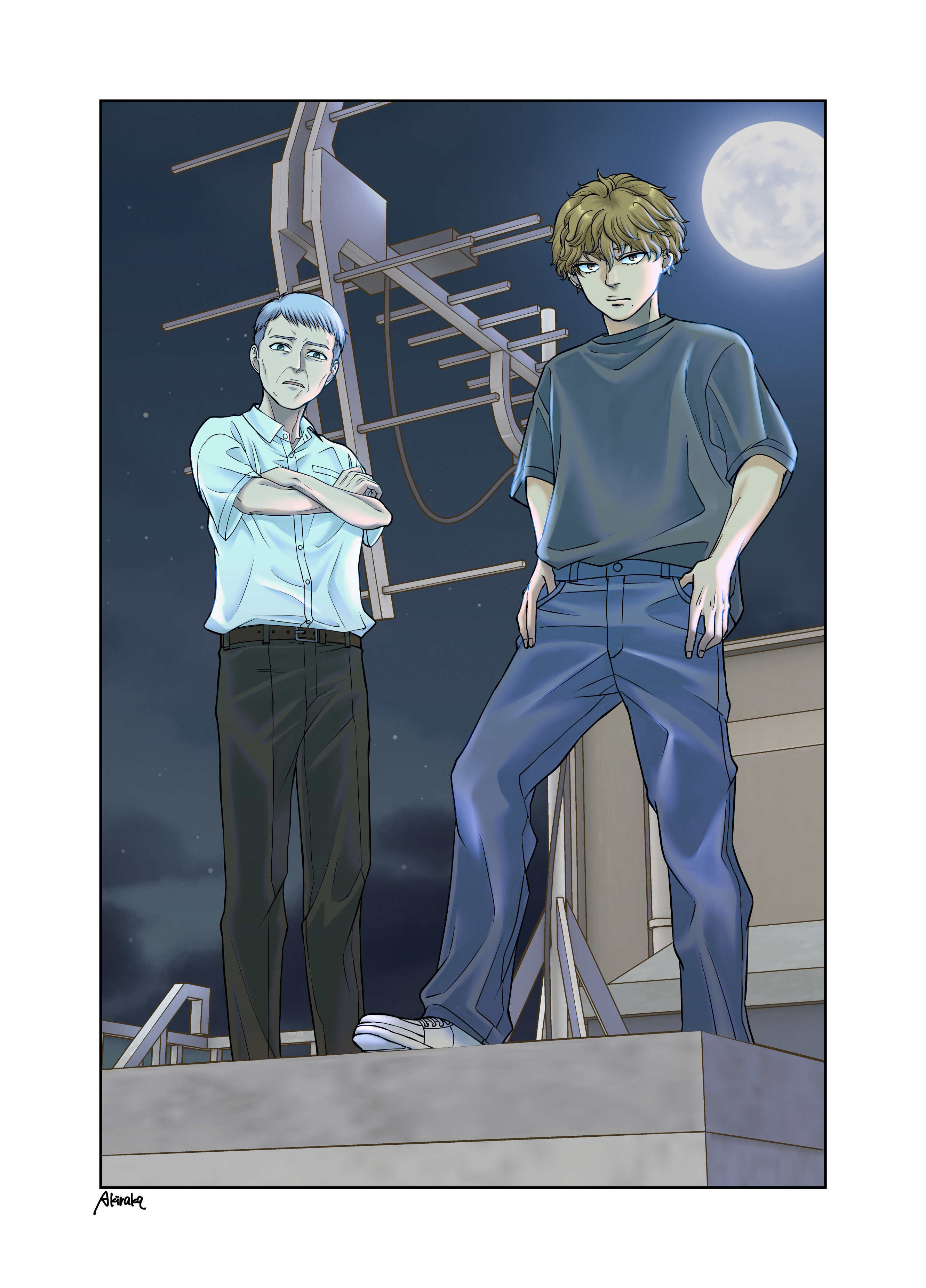廃ビルが再び普段の姿を取り戻し、向かいの道路に停められた黒のクラウンが走り出したのを3棟離れた別のビルの屋上から観察している人影が二つ夜闇に紛れていた。