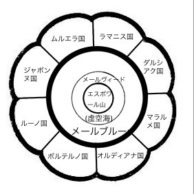 外側には山脈がそびえ、内側にはメールブルーと呼ばれる海が各国を繋いでいる。