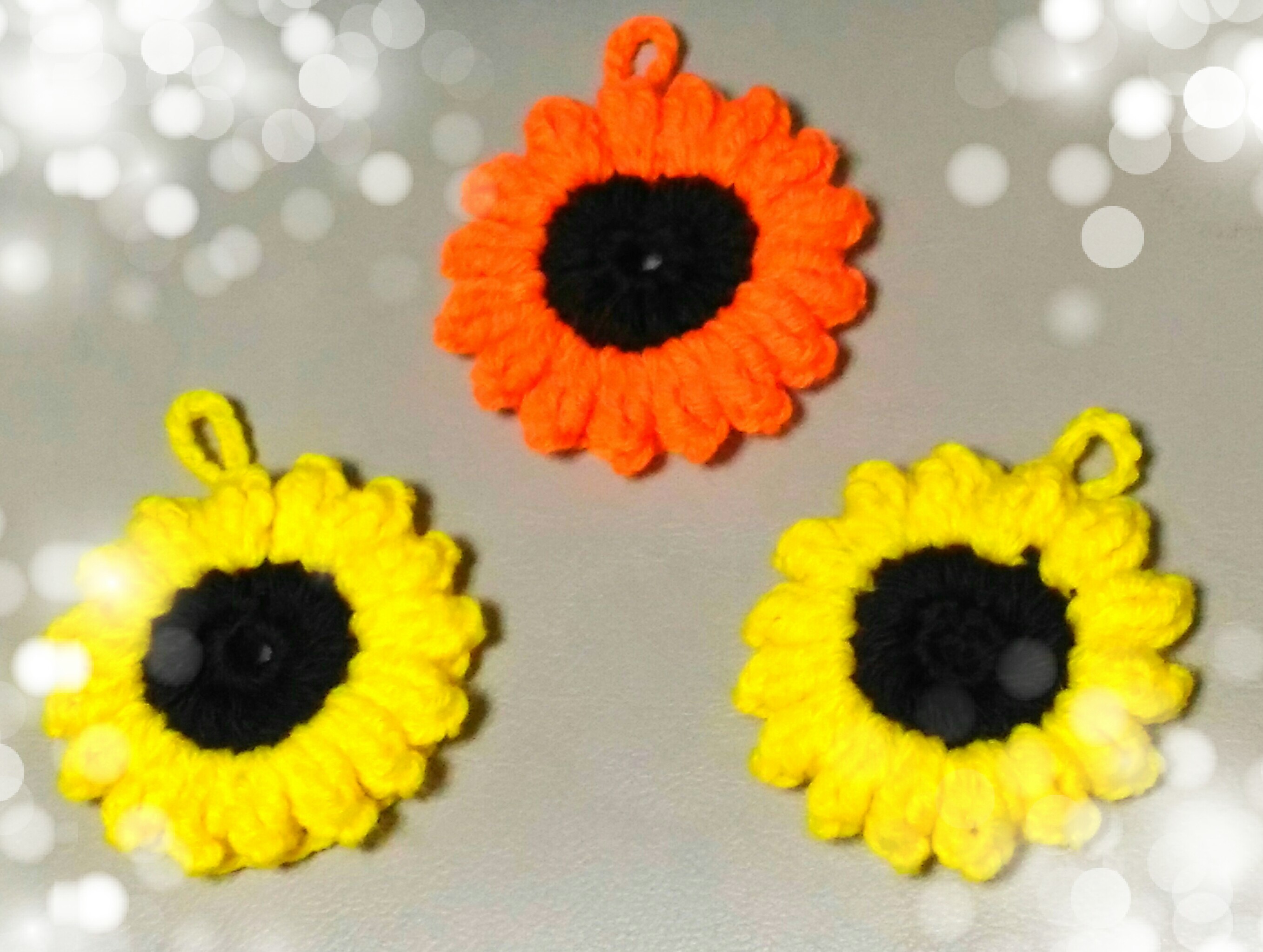 いちごのエコたわしがラス1でそろそろ無くなりそうなので、今度はひまわり編んでみました。夏が来ますしね。